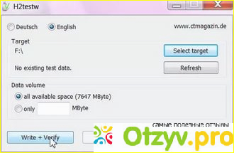 Итак, первое что нам нужно это скачать утилиту под названием h2testw. Скачиваем ее, для удобство выбираем нужный язык, русского там нет, мне более понятен Английский. И нажимаем кнопку, под названием «Select target».