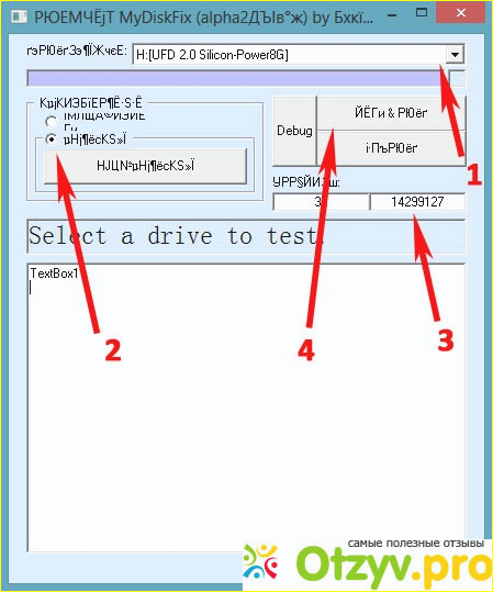 Первое что нужно, это выбрать нужную флешку. Второе что мы делаем, это переставляем точку в кружочке на нижний пункт. Третье, мы вводим количество секторов, из программы выше, наше число 14299127.