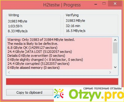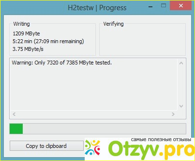 Затем мы находим нашу флешку, ищите внимательно, чтобы это была именно она. Далее нажимаем кнопку «Write+Verify». Далее начнется процесс так называемого заполнения флеш-карты. А затем программа h2testw начнет сверять сколько было записано и сколько на самом деле находится на носителе данных. На проверку карты ушло примерно 2 часа.