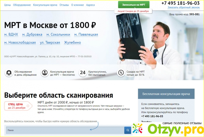 До 25 декабря действуют специальные цены на все виды МРТ. Ночью - скидка 30 %. Перед диагностикой вас проконсультирует врач клиники бесплатно.