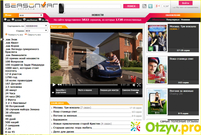 Я не первый год смотрю сериалы на seasonvar.ru. Он очень удобный, как только переходишь на сайт сразу видно какие сериалы вышли. На нем не очень много рекламы, она конечно есть, но она не выскакивает при каждом нажатии мыши.