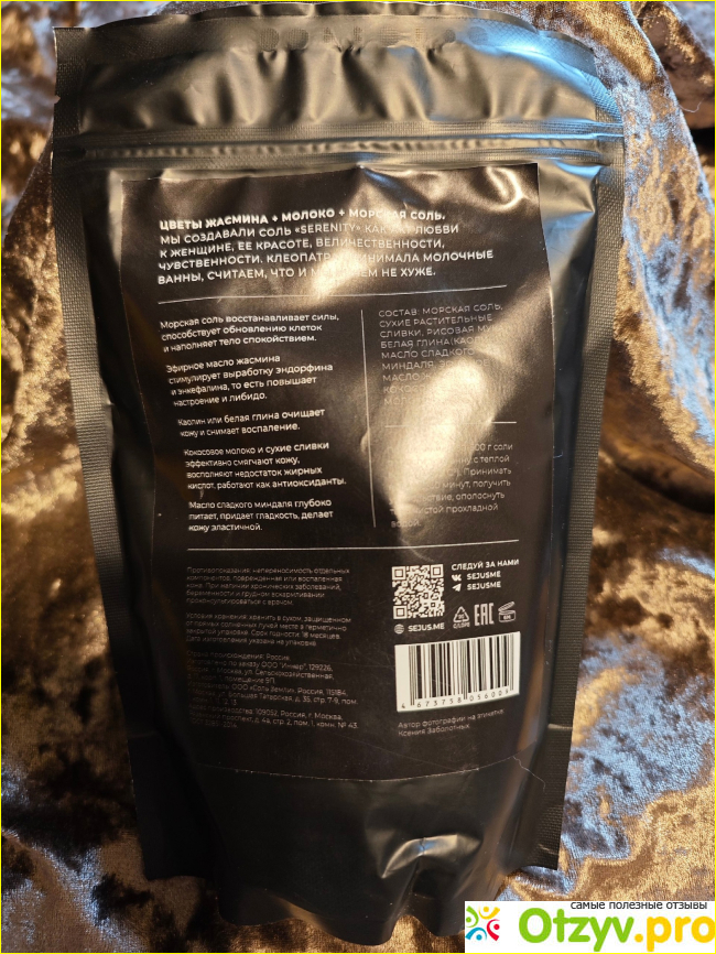 Видимо поэтому моя кожа отлично приняла это средство, могу наслаждаться его волшебным действием без каких-либо проблем. Морская соль хорошо увлажняет кожу, делая ее бархатистой и нежной. После ванны ощущается приятный расслабляющий эффект, который помогает мне снять стресс и усталость. Стоимость на WB - 420 рублей за 500 грамм, считаю, что данная соль стоит своих денег, потому что она действительно увлажняет кожу и приносит удовольствие.