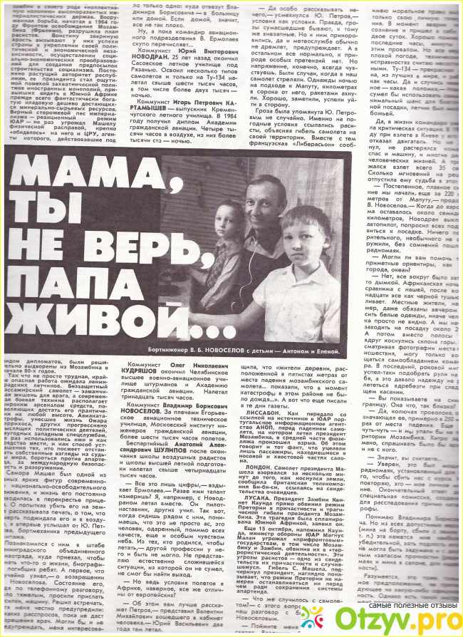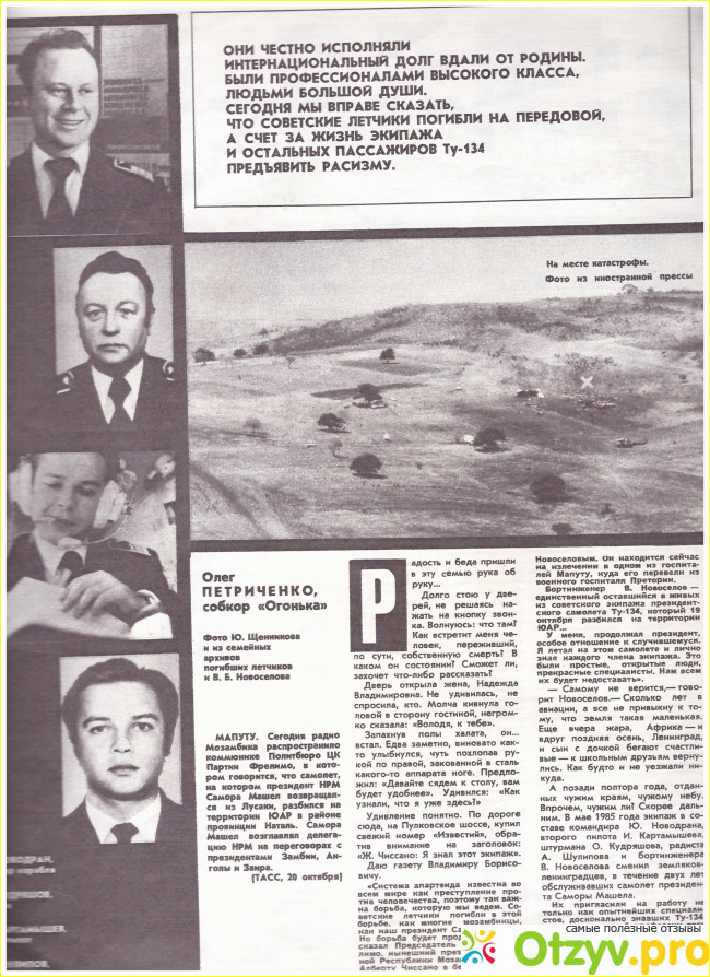 Президентский самолёт ТУ-134А , на котором летел президент республики Мозамбик, обслуживал ленинградский экипаж в составе командира Юрия Викторовича Новодрана, второго пилота Игоря Петровича Картамышева, штурмана Олега Николаевича Кудряшова, радиста Анатолия Александровича Шулипова и бортмеханика Владимира Борисовича Новосёлова.