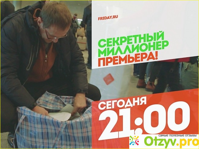 Считаю, что передача "Секретный миллионер" очень хорошая, интересная и оригинальная задумка. В принципе, многие проекты телеканала "Пятница" далеко не похожи на какие-то проекты из других телеканалов. Снята передача грамотно. Действительно, будто сам окунаешься во все события и переживаешь такие же чувства, которые испытывают люди проекта.