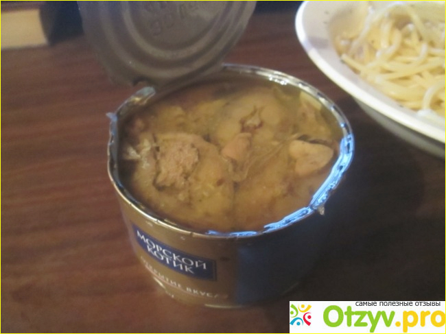 Так содержимое выглядит после извлечения рядом со спагетти. Селедка с макаронами это странное сочетание, мне она больше всего нравится с хлебом или картошкой.