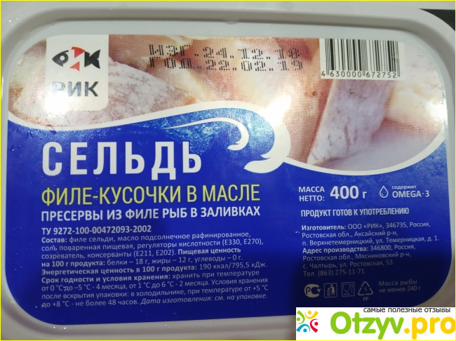 Приветствую всех любителей селедки! Ах, какую вкусную селедочку мы купили недавно- Филе кусочки в масле ООО "РИК", находящегося в Ростовской области!