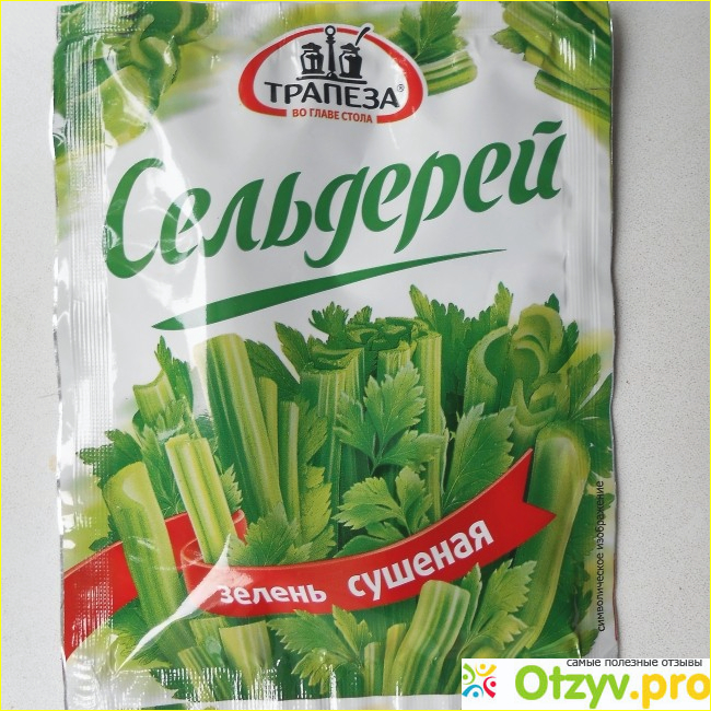 Раньше я сушила сельдерей в домашних условиях, это вовсе не сложно, но когда в продаже появилась недорогая приправа Сельдерей – зелень сушеная, я больше не стала ее заготавливать, а стала покупать. Ее выпускают несколько фирм, как известных, так и не известных, но мне понравился бренд «Трапеза». Пакетики небольшие – всего 7 г., информация на них написана четко. Не буду все это переписывать, лучше опубликую это фото.