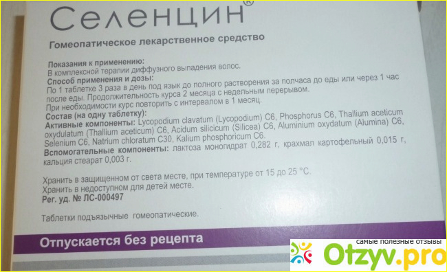 Кроме того, врач посоветовал одно гомеопатическое средство - препарат "Селенцин". Я решила, что пока ограничусь этими таблетками и витаминами, а платные процедуры оставлю на тот случай, если кроме них мне больше ничего помочь не сможет. Таблетки "Селенцин" я покупала в аптеке. Они оказались не дешевыми, но все же стоили гораздо меньше, чем процедуры в кабинете трихолога.