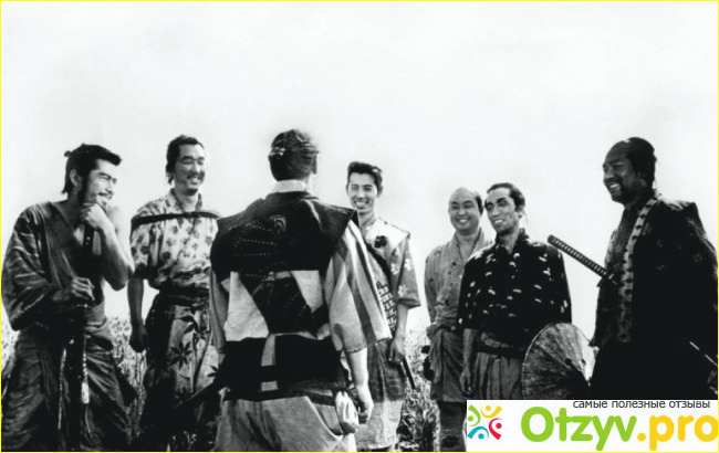 Многие, начиная смотреть этот фильм, учитывая звучное название настраиваются на масштабные батальные сцены, какие-то невероятные сражения. Однако вынужден их разочаровать, поскольку направленность фильма этого как и идея несколько другая. Наоборот даже, большая часть этого фильма посвящается именно подготовке к сражениям, к разного рода общениям и диалогам. Но как ни странно, это не вызывает никакой скуки, во всяком случае у меня. В каждый диалог, мало того – даже в каждое порой слово вложен определенный глубокий смысл. Интересны порой сами действующие лица, есть порой довольно интересные юмористические моменты. Причем удачно подобранные. А вот все баталии будут показаны именно в последнем часе кинофильма. Будет не один бой, а несколько, они идут серией. И показано все это в достаточной степени сдержанно, без какого приукрашения и высмаковывания. В общем – так оно должно быть – по простому и с реалиями. Смерть – она смертью и остается. Каждая стычка между самураями и разбойниками приносит свои результаты, разбойников становится все меньше и вероятность попадания очередного меча в холмик над землей возрастает.