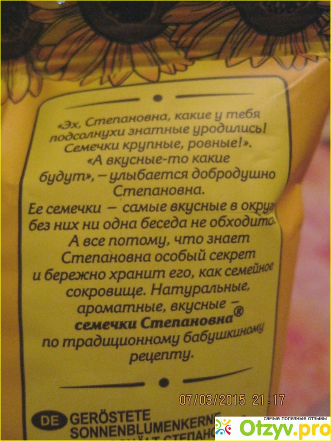 Таким качеством не каждый производитель может похвастаться, да и разновидностью упаковки, так-как ведь есть семечки данного производителя и крупные и жареные и каких только нету, производитель не стоит на месте и постоянно приносит в свою продукцию какие-либо новшества.