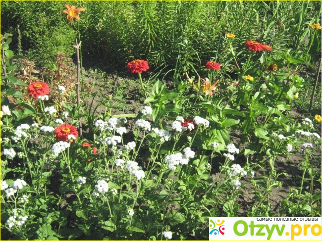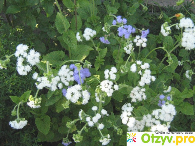 Мне понравилось, что цветы очень неприхотливы в выращивании и не нуждаются в каком-либо особом уходе. Даже при неблагоприятных климатических условиях они отлично цветут. Рассады у меня оказалось много и я всю ее рассадила по своему участку, в надежде, что цветы будут как на упаковке разных расцветок и очень красивые. Но увы, чуда не случилось. Всего получилось 2 расцветки, одна белого цвета, а вторая -нежно василькового. Почему производитель так напутал с данными семенами , я не знаю, но ожидаемого эффекта я не получила. Цветочки действительно были красивые, но я ими испортила весь свой цветник. Но это была моя вина, так как я не подрасчитала, что они так сильно разрастутся. Цветы были в виде пушистых комочков в крупных сложных соцветиях диаметром до 7-9 см. Цвели цветы все лето, до самой поздней осени. Они хорошо смотрелись бы в срезке, если бы были разных цветов, как указаны на упаковке.