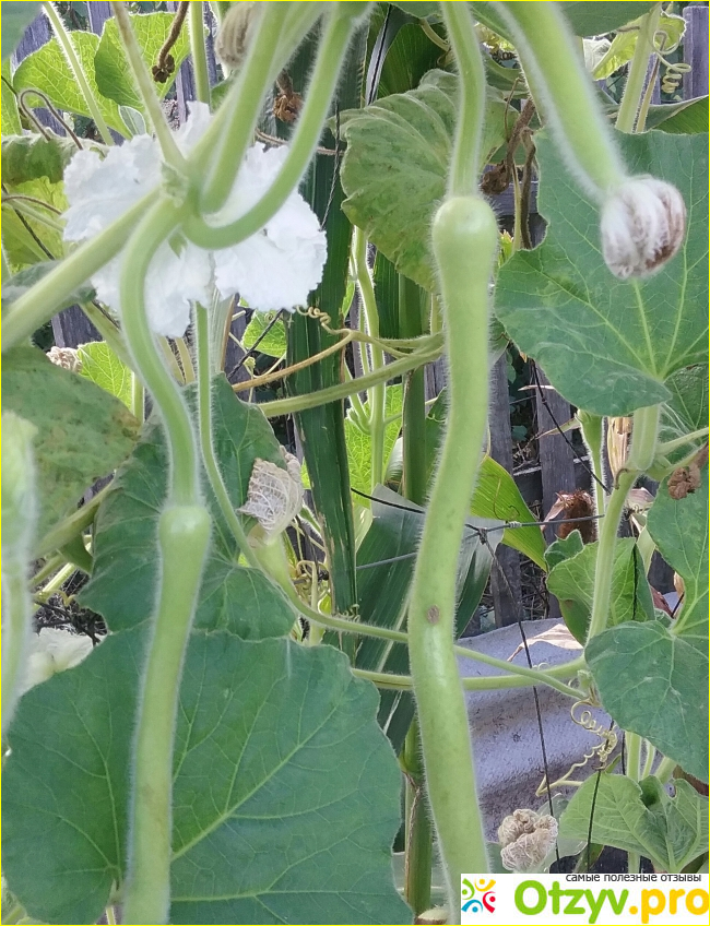 Впоследствии мне стало известно, чтобы вырастить богатый урожай лагенарии, то необходимо производить опыление. Я сначала этого не знала и поэтому никакого опыления не делала. Несмотря на это мне все-таки удалось вырастить несколько лагенарий длиной более 1 метра.