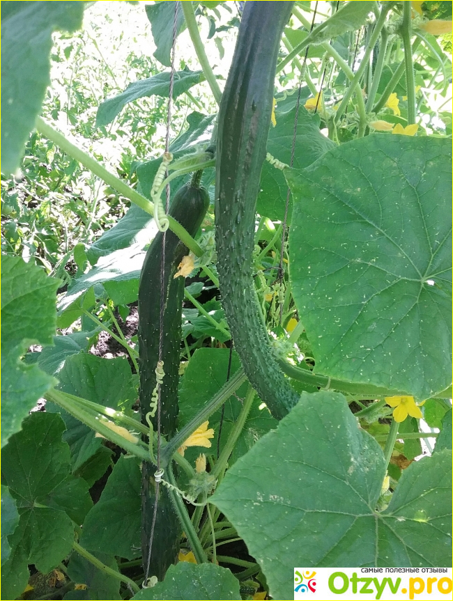 Сами огуречки темно-зеленого цвета, длиной могут вырастать до 50-60 см, а диаметром до 7 см при хорошем уходе и нормальных погодных условиях. Общий вес огурца может достигать до 150-200 грамм.