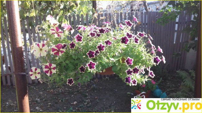 Тогда кашпо получается ярким цветущим кустом. При посадке использую обычный грунт с добавлением перегноя и немного песка. Прекрасно растут, обильно цветут, создают уют и красоту моего маленького дворика. Вот сейчас конец сентября а у меня во дворе вовсю еще цветут петунии посаженные весной. Некоторые сорта даже имеют приятный аромат и на их цветы прилетают разные бабочки и шмели. Чтобы петунии постоянно цвели периодически вношу подкормки.
