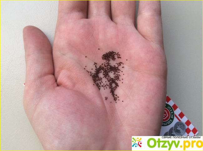 Разглядывая впервые семена я была немало удивлена, так как они мне показались чрезвычайно маленькими, неудобными для посадке. Семена представляют собой маленькие чёрные точки, меньше чем мак. Семена крайне мелкие, даже на ощупь. Перед посадкой я подготовила почву со всеми рекомендациями и требованиями от производителя, посадила семена, накрыла плёнкой для парникового эффекта. Семена взошли довольно дружно, в большом количестве.
