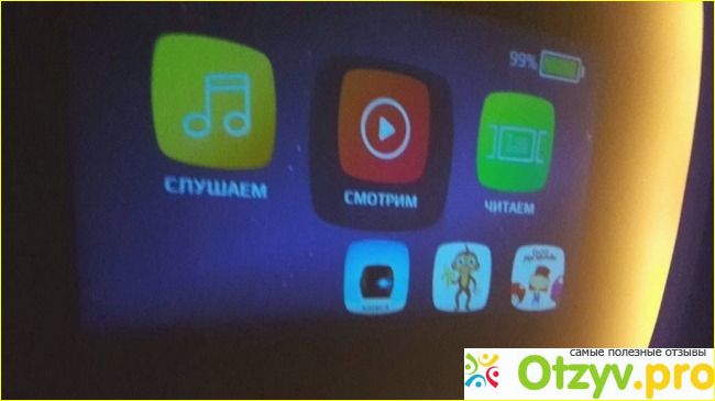 Он очень удобный и совсем не греется, дочка его может даже в руках держать, Cinemood показывает в любом положении и на любой поверхности. Она его даже в машине смотрит, когда мы ездим в гости, и даже в самолете.