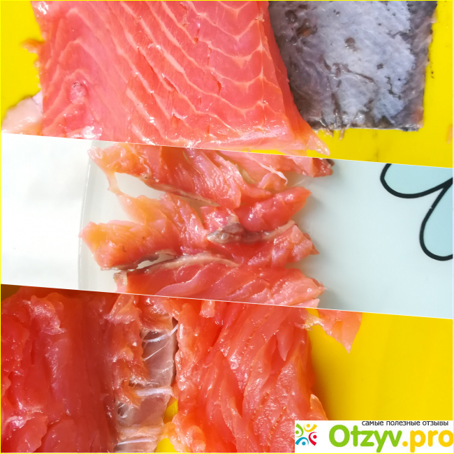 По вкусовым качествам рыбка, таяла во рту и была нежной, но это ее не спасло, т. к. она была не очень вкусная и совсем не жирная. Что касается соли, то она была и не пересолена и не недосолена. Запах у семги, не сильно выраженный.