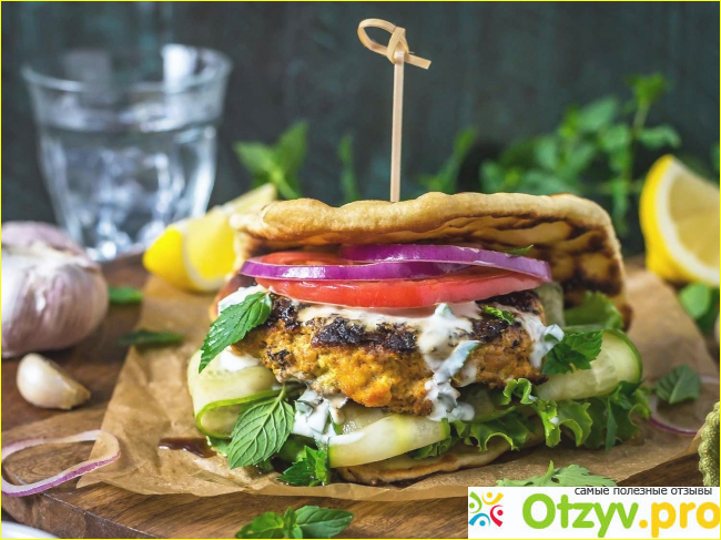 л. паприки 1 чайная ложка молотых семян кориандра 1 ч. л. куркумы1/4 чайной ложки кайенского перца 1 столовая ложка (15 г) тертого свежего очищенного имбиря1/2 стакана (125 г) простого йогурта Сок 1 лимона 1 халапеньо1/4 стакана (6 г) свежих листьев мяты Кошерная соль 4 лепешки наан, Пита или булочки для бургеров 1 средний огурец, тонко нарезанный вдоль на ленточки Свежие листья кинзы и нежные стебли, для сервировки Тонко нарезанный красный лук, нарезанные помидоры и зеленый салат, для сервировки, при желании