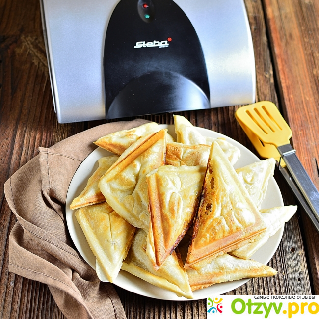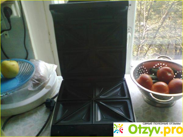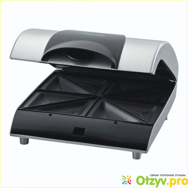 Ни каких других функций и настроек в такой модели прибора не имеется. Внутри прибора, как верхней так и нижней стороны находятся специальные пластины. Как раз они выполнены в виде треугольных сэндвичей. Единственным существенным недостатком такой модели является то, что у нет нет возможности менять сами пластины, как это можно сделать у мультипекаря Редмонд. В этом приборе пластины уже устроены.