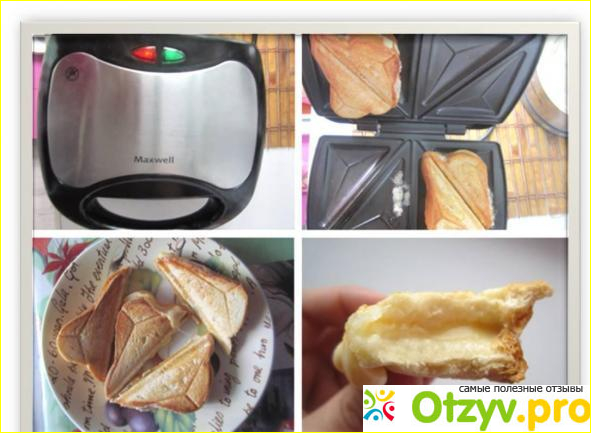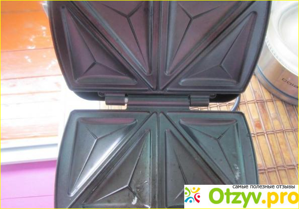 Сэндвичи получаются вкусными. Перед тем, как сэндвич укладывают в форму, её всё-таки лучше смазать подсолнечным маслом, несмотря на то, что покрытие антипригарное.