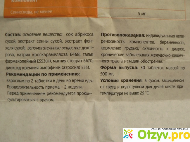 Если бы я принимала, как рекомендовано, по 2 таблетки, возможно, эффект наступил бы раньше, но я не люблю резкого реактивного воздействия на ЖКТ. В этой дозировке слабительное средство "Сенна + абрикос" является для меня оптимальным.