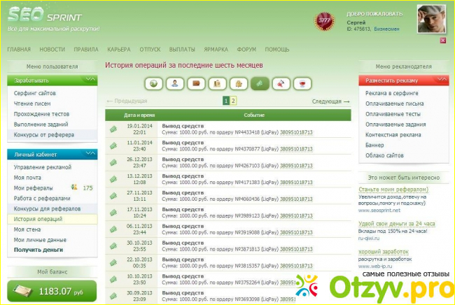 Однако, еще раз говорю: сеоспринт - это букварь. Есть нормальные сервисы, где за час несложно поднять сто рублей. Но если вы не можете разобраться в принципах работы на сеоспринте, вы не разберетесь нигде, никогда и ни в чем.