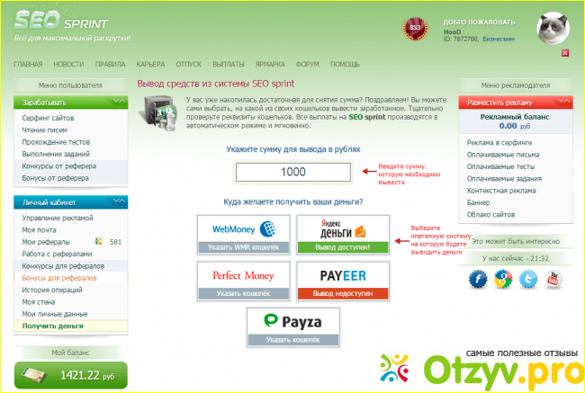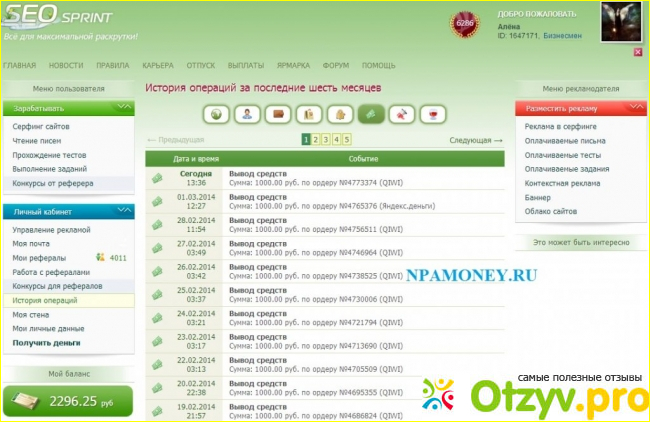 люблю его за стабильность и возможность выводить деньги без комисии на карту российского банка. Чего нет на сайте Seo sprint , но зато там другая специфика работы. Она более простая в некоторых случаях. А где то очень сильно запутанная. Обо всем подробнее хочу рассказать.