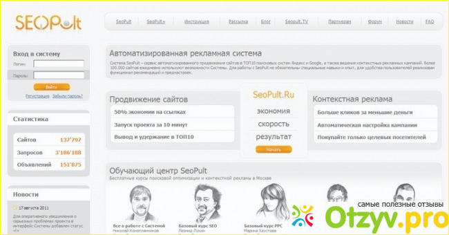 Если же вы решили полностью отдать свой сайт на развитие представителем Seopult, то они могут полностью следить за состоянием вашего сайт: внутренняя и внешняя оптимизация сайта, наполнение контентом, привлечение трафика и другое, но это обойдется вам в приличную сумму денег.