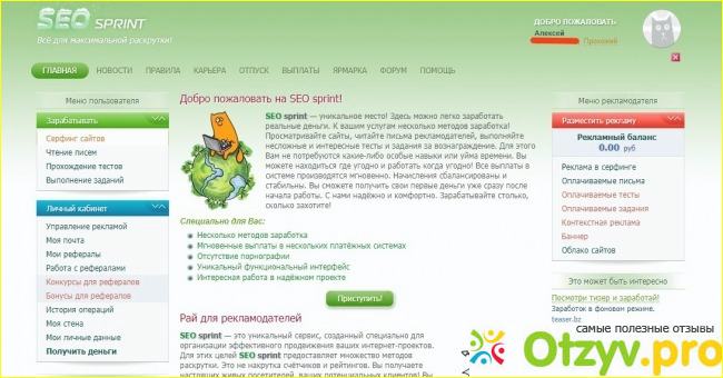 Но вот бывают и минусы у сервиса. Платит он очень и очень мало. За день можно, конечно, рублей десять заработать, но не более. Почему? Слишком уж мало заданий. Тестов, серфингов сайта и чтение писем - тем более!