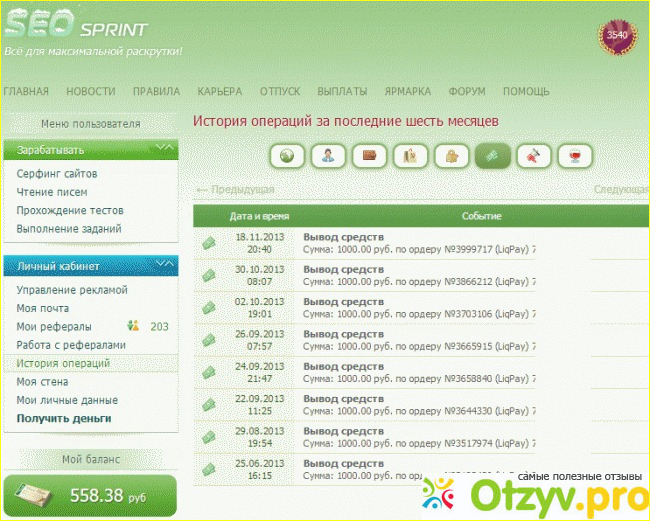 Итак, что хотелось бы сказать об этом сайте -seosprint.net - Сайт действительно является сайтом для заработка денег в интернете , теперь подробнее о минусах и плюсах.