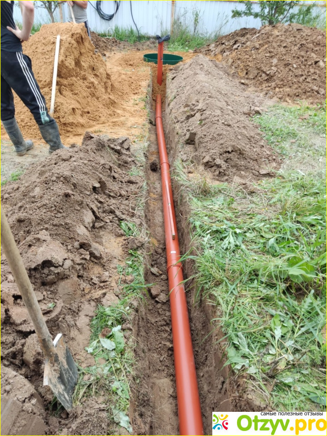 Ну может не очень больших, но если у вас хороший газон - он точно пострадает. Занимает вся эпопея порядка 5 часов. Делают траншеи, в которые укладывают трубы, копают яму под сам септик.