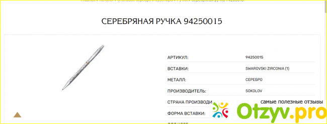 Хочется поделиться приятными впечатлениями о своей удачной покупке в магазине "Сердолик". Больше недели как стала обладательницей стильной серебряной ручки фирмы SOKOLOV, арт. 94250015, с эффектными вставками.