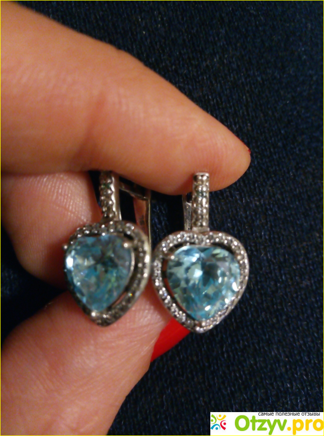Ей очень понравились, теперь не снимает их. Сережки ни лёгкие, ни тяжёлые - золотая середина. Были хорошо упакованы. Выглядят очень дорого и привлекательно. В центре имеют камень голубого цвета, вокруг которого серебро. Камень переливается и вызывает красивые блики на свету. Удобно застёгиваются. Можно носить в сочетании с подвеской либо кольцом. Но если хотите, чтобы люди обратили внимание только на серьги, носите отдельно от всего.