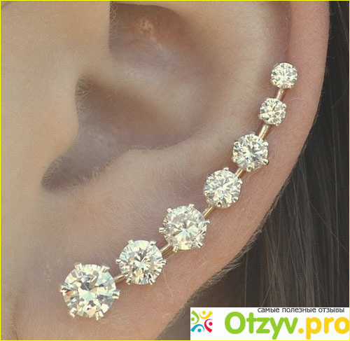 А еще есть такие серьги, которые имеют специальное зажимное кольцо, которое как раз и фиксирует их хорошо на самой ушной раковине. Само зажимное кольцо так же украшается различными декоративными элементами.