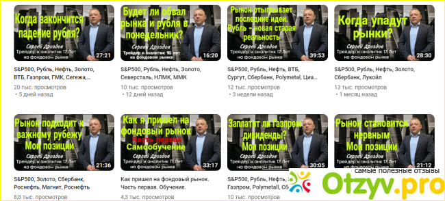 Сергей Дроздов — яркий тому пример. Он дает четкую информацию строго по теме, все его видеоматериалы строго разделены по темам. Заглавия четкие, информация сжатая, разве что с историями, но и они не часты.