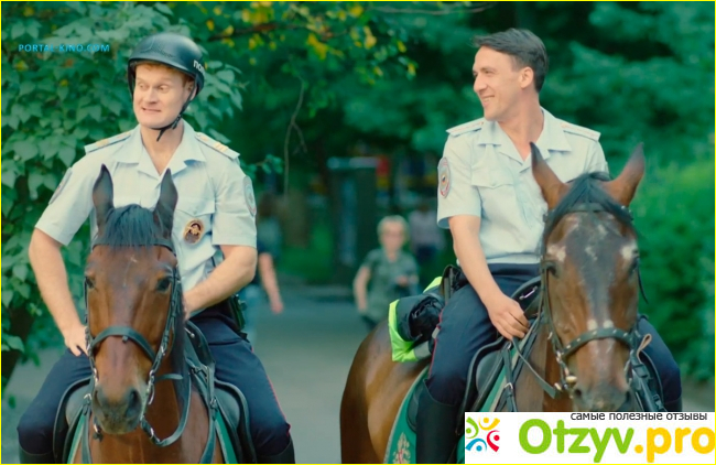 Самое забавное, что даже над названием долго думать не стали, просто представили «Конную полицию». Центральные роли исполнили: Артур Смольянинов, Наталия Медведева, Борис Дергачев, Стася Милославская и так далее.