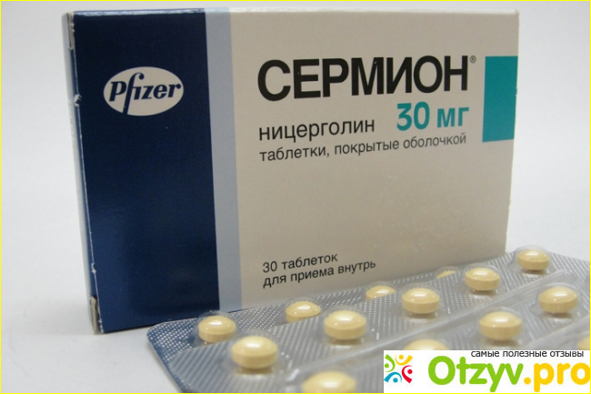 Действующим веществом препарата «Сермион» является ницерголин. Лекарство продается с дозировками пять, десять или тридцать миллиграмм.