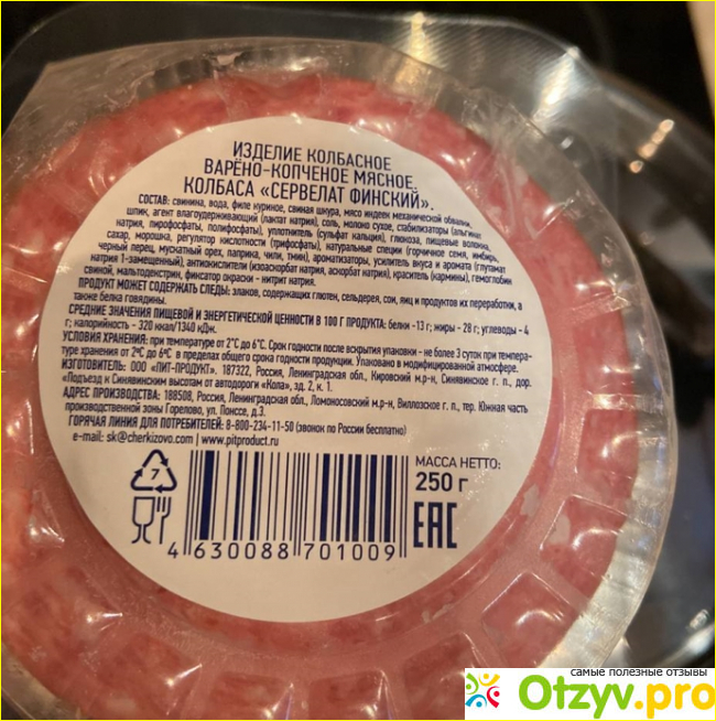 Для меня это сочетание хорошего состава и отличных вкусовых качеств. Мне обычно сложно вставать по утрам, поэтому стараюсь подбирать удобные блюда для быстрого завтрака. Купил сервелат в нарезке из-за удобства. В упаковке 250 грамм продукта. Колбаса нарезана тонкими равномерными ломтиками.