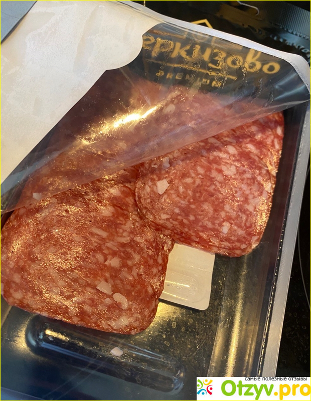Покупали эту колбасу с собой в дорогу. На наш выбор повлияла вакуумная упаковка, которая сохранит продукт до самого употребления, а также внешний вид колбасы.