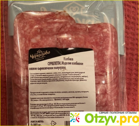 Хороший качественный сервелат, который можно покупать на каждый день. Очень удобно, что идет сразу в нарезке, поэтому не надо резать и пачкать нож. С утра очень выручает, особенно если опаздываешь и надо быстро съесть бутерброд.