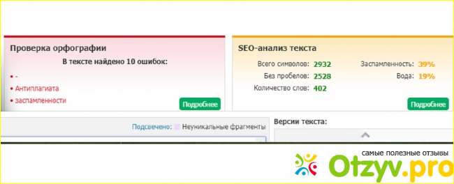 Я пользуюсь этим сервисом как гость, и самая длинная проверка заняла минут 15. Считаю, что это вполне нормально. Результат по грамматическим и пунктуационным ошибкам, а также анализ заспамленности и "водянистости" текста выдается мгновенно. Однако нельзя полностью доверяться такой проверке. Сайт не знает некоторые слова и выделяет их, как содержащие ошибки. Особенно это касается географических названий, фамилий, заимствованных слов и профессионализмов. Создателям сайта пора бы уже пополнить словарный запас системы. Еще программа упорно указывает на ошибку, если в конце предложения стоит имя прилагательное в любом падеже. В русском языке такое построение предложений не является неправильным, гораздо хуже, если в каждой фразе повторяются одни и те же слова. Тавтологию не любит и данный сервис, только он называет ее иначе – заспамленность. Слова, которые не несут смысловой нагрузки, считаются "водой". Это – предлоги, союзы, вводные слова, иногда в эту категорию попадают числительные, наречия.
