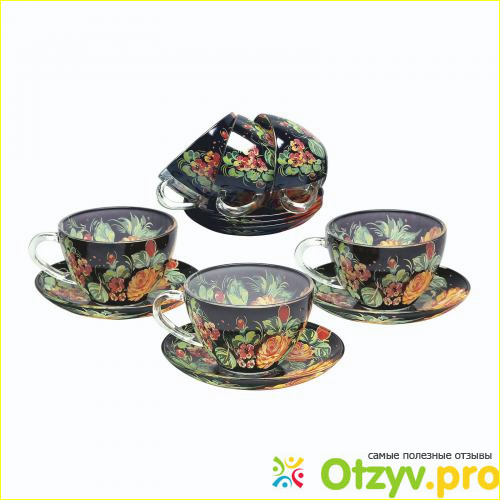 Во первых очень красивый дизайн в стиле хохломы. Во вторых на черном фоне не видно грязи, что очень важно, так как чай имеет свойства периодами окрашивать краешек чашки, а отмывать приходится долго и тщательно. Коллекцию сервиза русские традиции называют уникальной и не спроста, так как он выполнен из стекла, высокого качества, а производит его немецкий производитель посуды Germanika, европейское качество посуды всегда привлекала нас русских и иметь такой сервиз большая удача для многих людей.