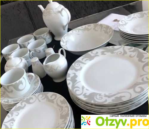 Я выбрала именно этот сервиз за его количество предметов — 36 штук. Здесь не только чашки, тарелки и блюдца, здесь имеется и другая посуда, которая помогает красиво сервировать стол.