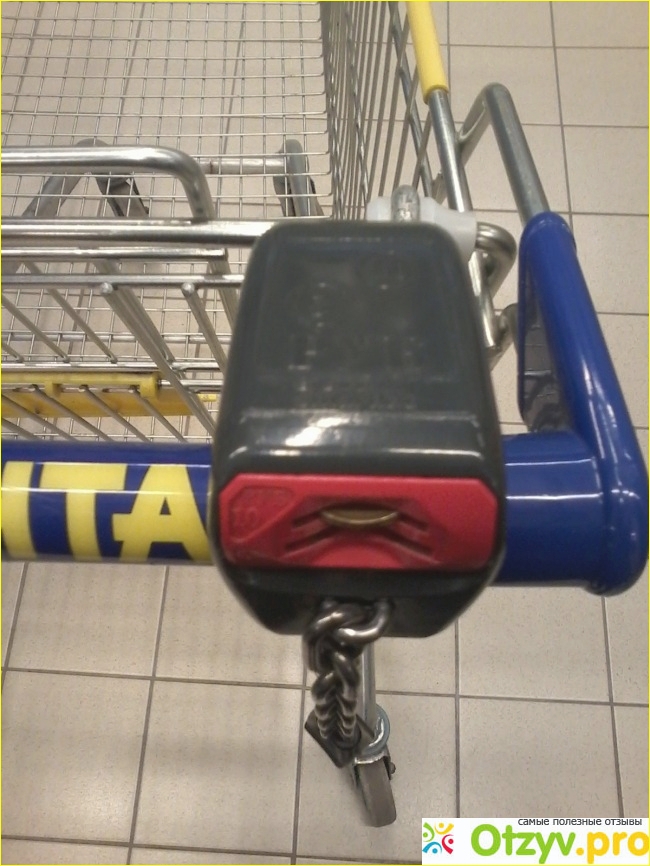 Чтобы воспользоваться тележкой, нужно иметь десять рублей. можно одной монеткой, а можно и двумя пятирублевыми. Если у вас нет мелочи, то можно воспользоваться аппаратом для размена денег. Монетка засовывается в замок и есть возможность отстегнуть цепочку.