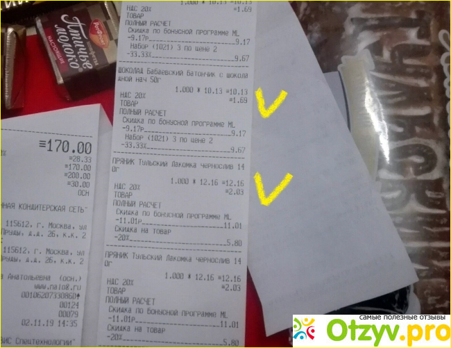 Эти бонусные рубли можно потратить на оплату 50% от суммы покупки. Но самое замечательное то, что в «Аленке» действует скидка на скидку. Например, ты покупаешь все конфеты, которые уже выставлены с акционными ценниками и 20-процентной скидкой. А потом при оплате часть итоговой суммы баллами с карты "Аленка" списать можно.