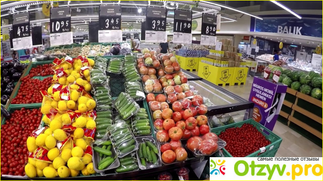 Я терпеть не могу торговаться. А на базаре именно это нужно делать, фиксированных цен нет. И сколько бы я ни покупала, заметила, что турки стараются обмануть или обвесить. Поэтому магазины, которые выглядят по – европейски, с фиксированными ценами, для меня прекрасный выход. Предпочитаю набрать корзину – всё, что мне надо – и рассчитаться на кассе. Магазины Migros очень большие, ассортимент широкий, – есть всё, что нужно. Удобная форма расчёта. Внутри магазинов чисто. Персонал отзывчивый, очень многие продавцы говорят на русском языке. Встречала двух продавцов не просто русскоязычных, но и вообще русских – эмигранты, которые работают в этом магазине. Их туда с удовольствием берут на работу.