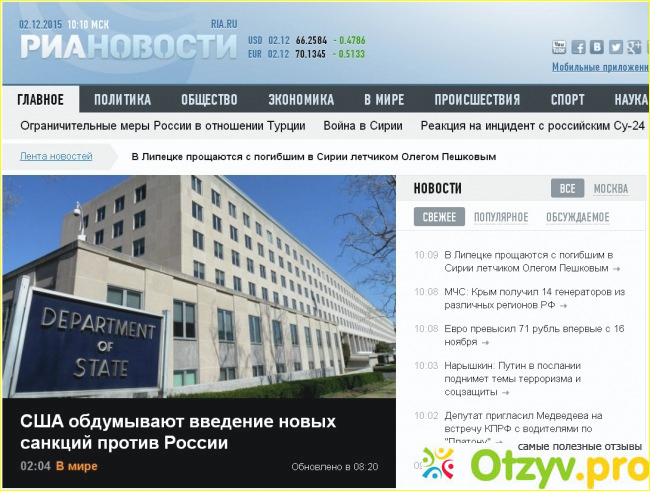 Многим хорошо известное сетевое издание "РИА Новости" не ограничивается каким-то узким кругом тематик, здесь можно прочитать обо всём, что происходит в Российской Федерации и на всей планете. О чём же именно оно нам расскажет? США поговаривает о введении новых ещё более изощрённых санкций против нашего государства. Вас это удивляет? По-моему, к позиции этой заокеанской страны все у нас давно привыкли и мы уже ничему не удивляемся. Поэтому пойдём дальше.