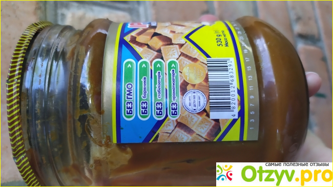 На баночке можно ознакомиться с составом сладости, а также там указаны контактные данные производителя и срок поставки.