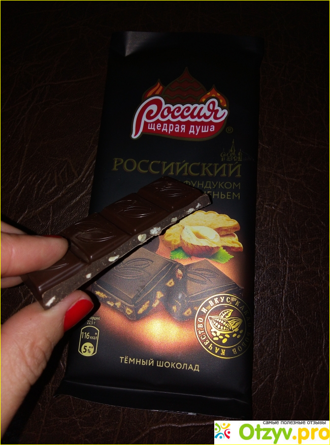 Кто еще не пробовал данный вкус шоколада Россия щедрая душа со вкусом печения и фундука я рекомендую, достойный вкус, высокое качество самого темного шоколада, долгое время оставляет послевкусия.