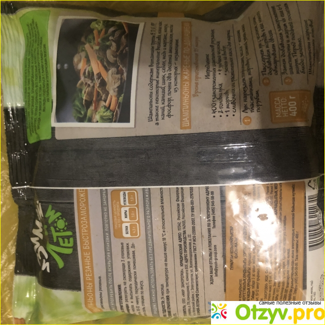 Не рекомендуем шампиньоны от производителя «Green Морозко». Как и всю продукцию, в принципе. Не думаем, что остальная заморозка у них в норме.